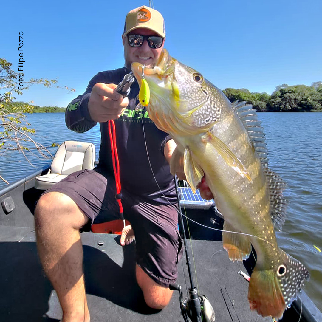Isca Artificial de meia água com barbela larga com excelente nado lateral, possui garateias reforçadas 4X.